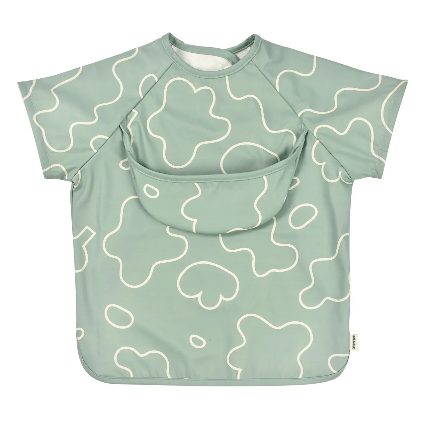 Grâce à ces trois positions de boutons pression, il est facile à attacher et à ajuster à la taille de l’enfant. Doté de manches détachables, il peut s’utiliser en version manches courtes selon les besoins. Sa poche située en partie haute du bavoir récupère efficacement les aliments et peut être repliée lorsqu’elle n’est pas nécessaire (pour les activités créatives par exemple).