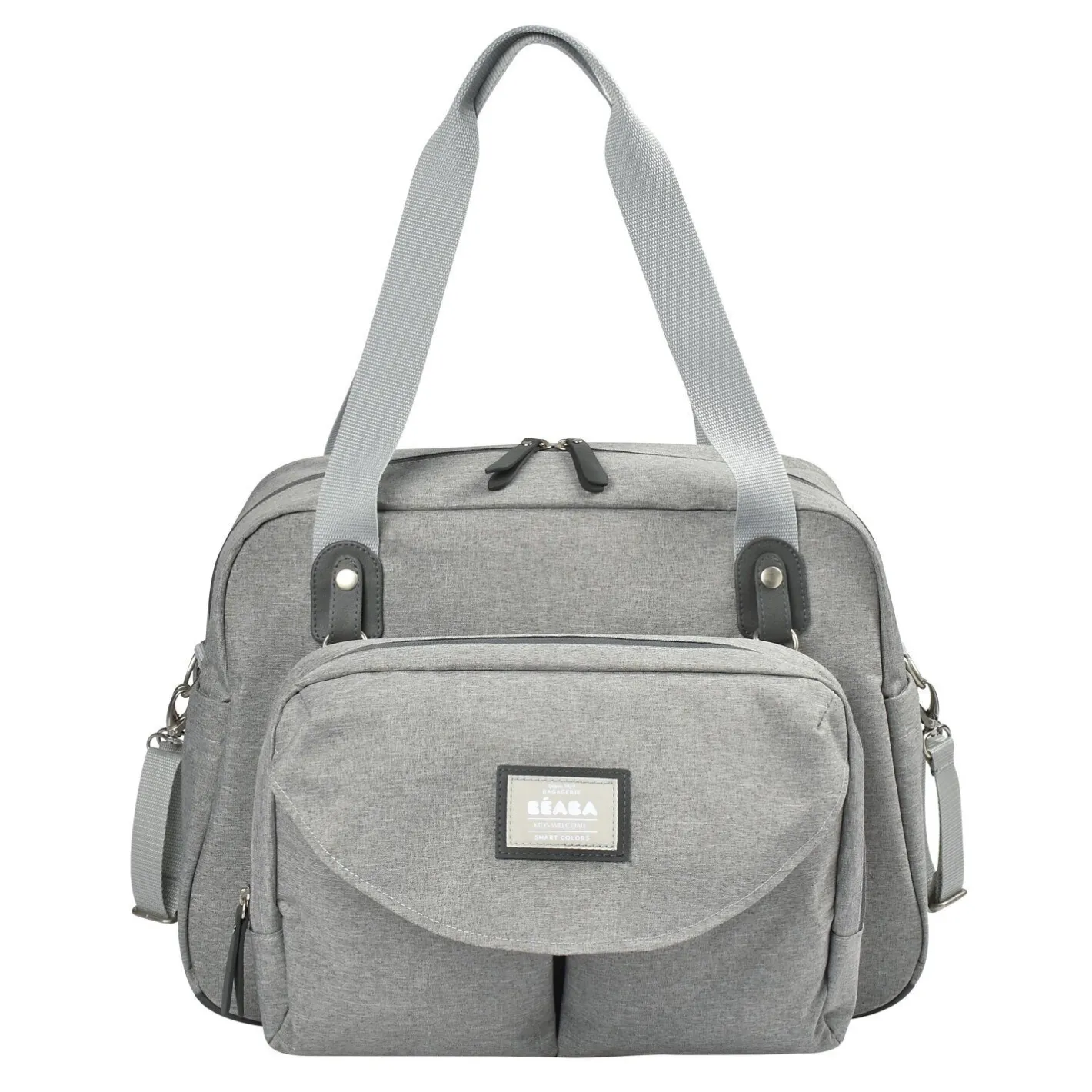 Sa grande contenance permet de transporter tout le nécessaire pour bébé et les parents, tout en gardant un style moderne. Le sac dispose d’un système d’attache poussette intégré, s’adaptant à la plupart des modèles de poussettes pour une utilisation pratique et mains libres. La pochette avant est amovible et offre une flexibilité supplémentaire pour un rangement adapté aux besoins du moment. Avec sa longue bandoulière amovible, le sac peut être porté confortablement à l’épaule. De plus, il est équipé d’un système d’accroche trolley, idéal pour les voyages, permettant de le fixer sur la poignée rétractable d’une valise. L’intérieur du sac est conçu pour une organisation optimale grâce à ses multiples rangements. Vous pouvez y transporter aisément les affaires de bébé ainsi que celles des parents. La pochette repas isotherme intégrée permet de conserver les aliments de bébé à la bonne température, qu’ils soient chauds ou froids.